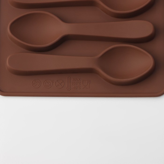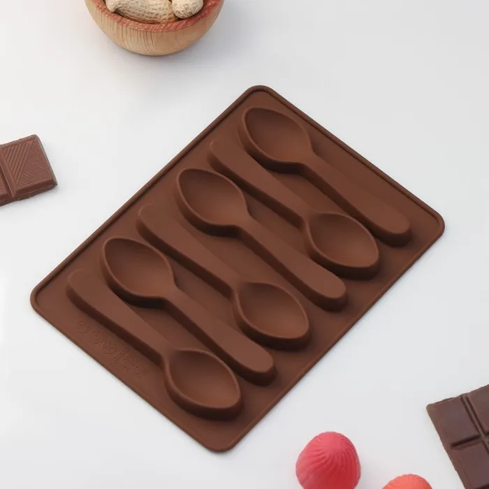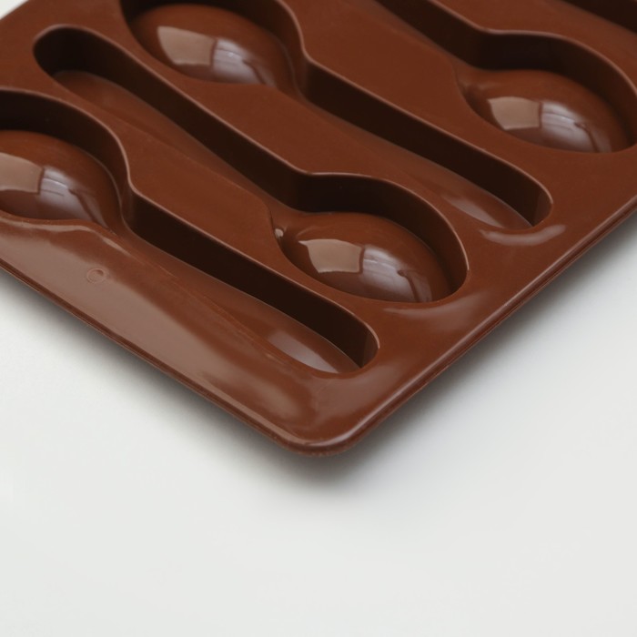 Форма для шоколада Доляна «Ложечки», силикон, 18×12×1,2 см, 6 ячеек (9,8×2,3 см), цвет коричневый — Характеристики
