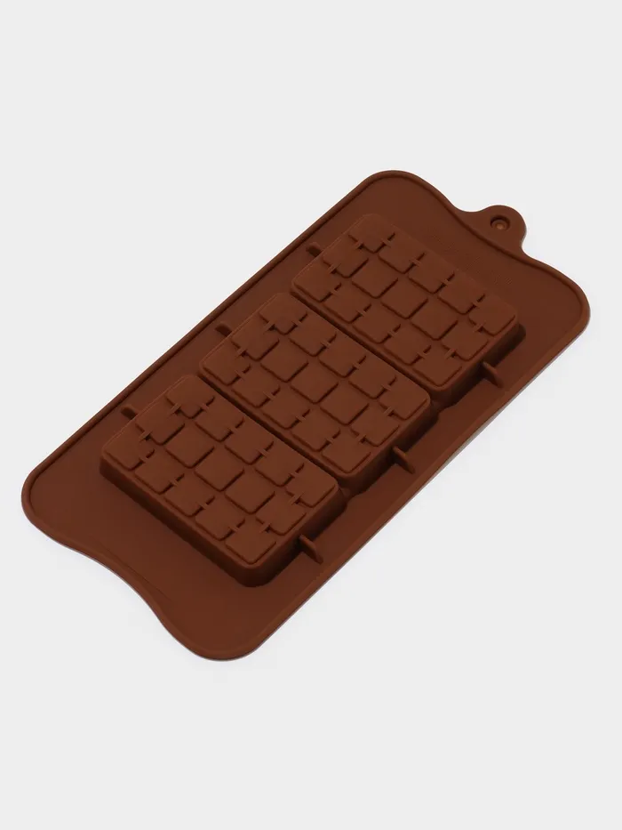 Форма для шоколада Доляна «Мини-шоколадки», силикон, 22×11×1 см, 3 ячейки, коричневая — Характеристики