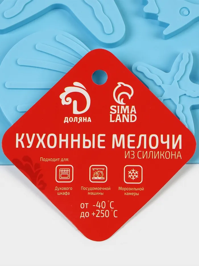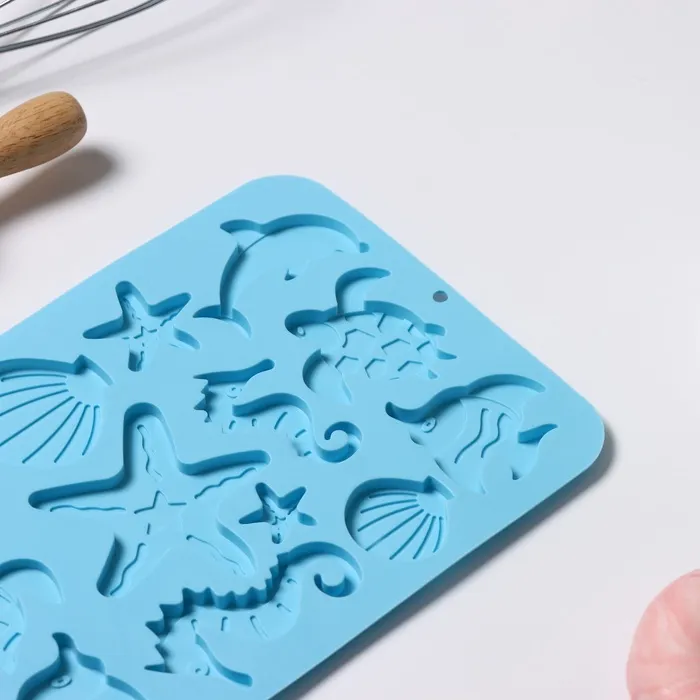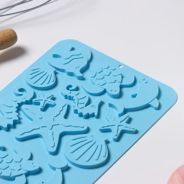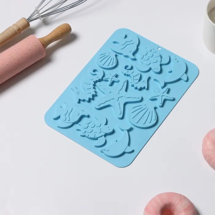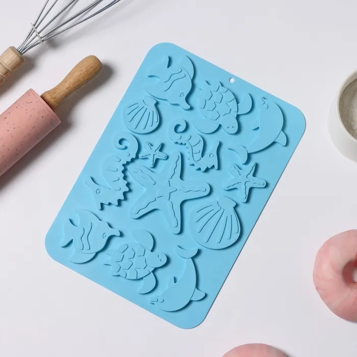 Форма для шоколада Доляна «Морская история», силикон, 23×16×0.5 см, 13 ячеек, голубая — Характеристики
