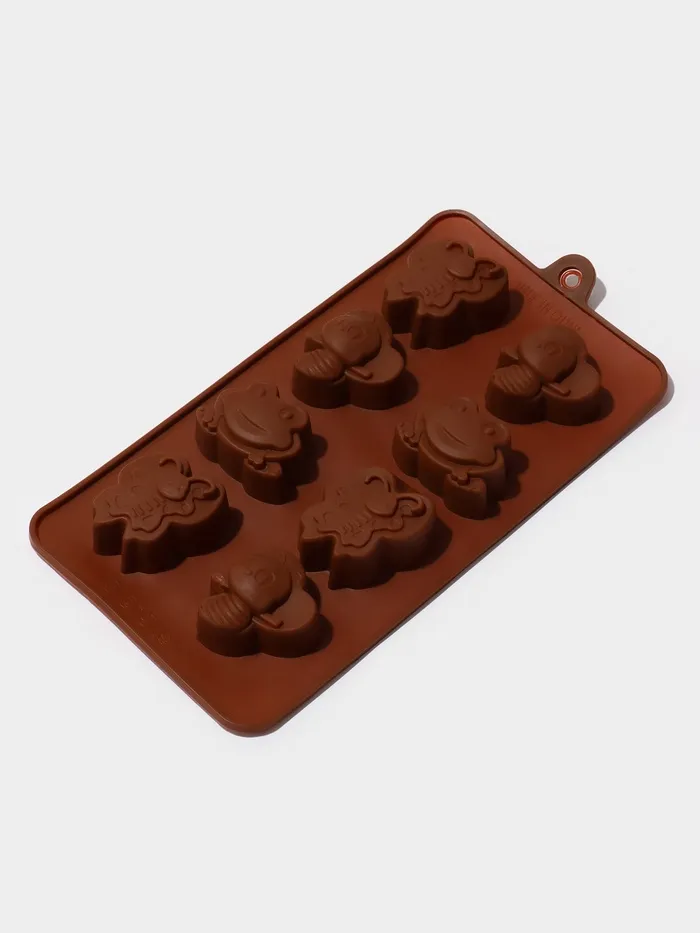 Форма для шоколада Доляна «Насекомые», силикон, 22×11.5×2 см, 8 ячеек, коричневая — Характеристики