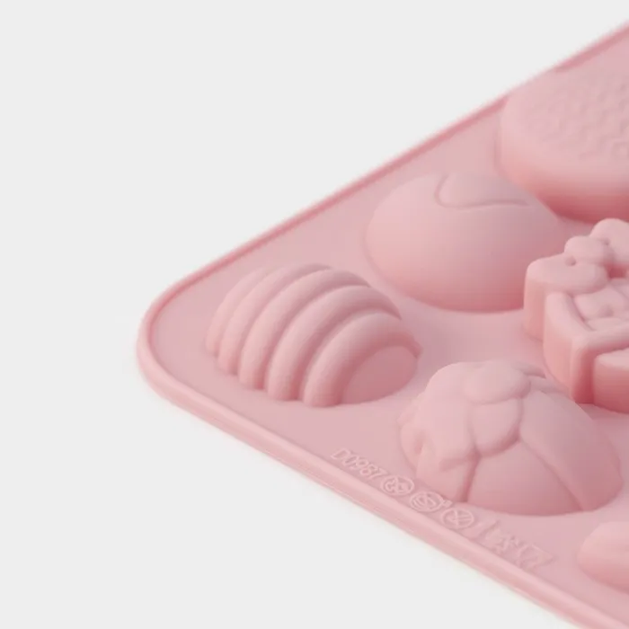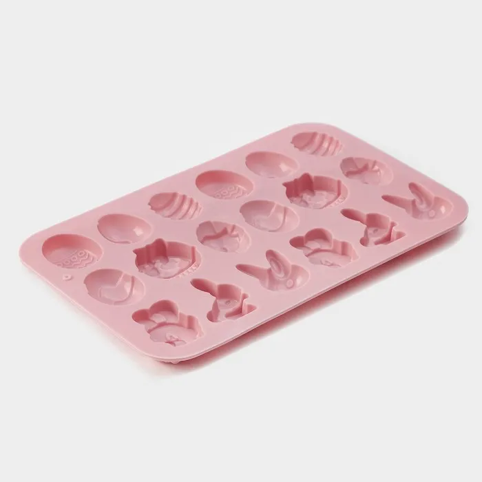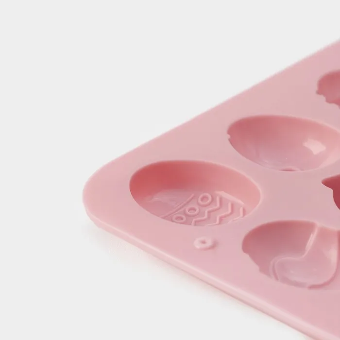 Форма для шоколада Доляна «Пасхальные кролики», силикон, 19×12,5×1 см, 18 ячеек, розовая — Характеристики