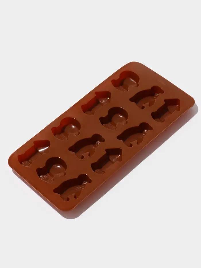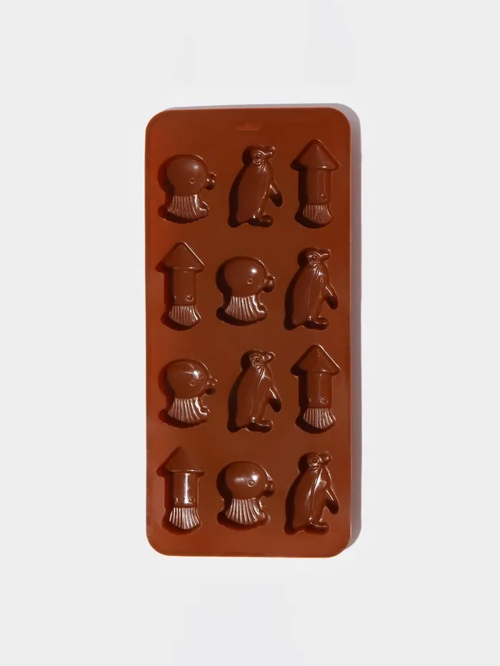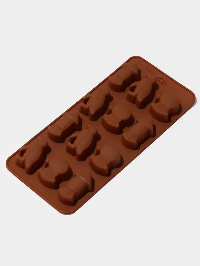 Форма для шоколада Доляна «Пингвины», силикон, 21.5×10×1.5 см, 12 ячеек, коричневая — Характеристики