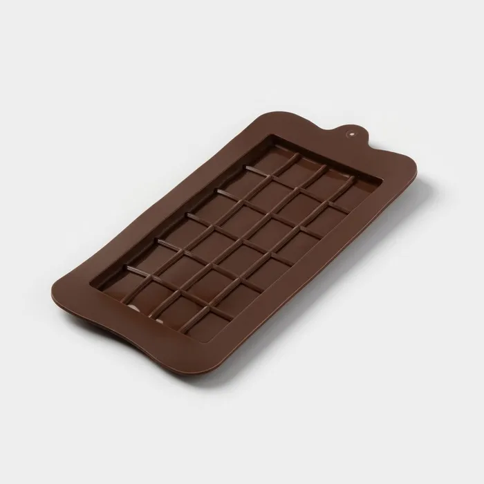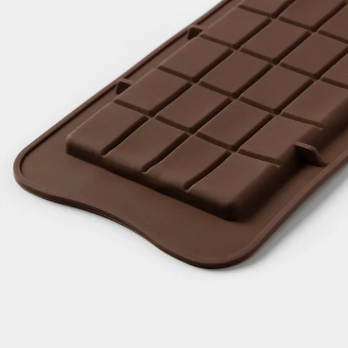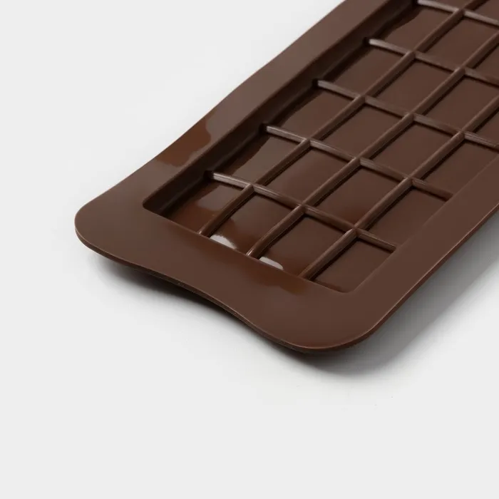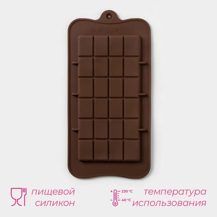 Форма для шоколада Доляна «Плитка», силикон, 22.5×10.5×0.2 см, 24 ячейки (2×2.5 см), коричневая — Характеристики