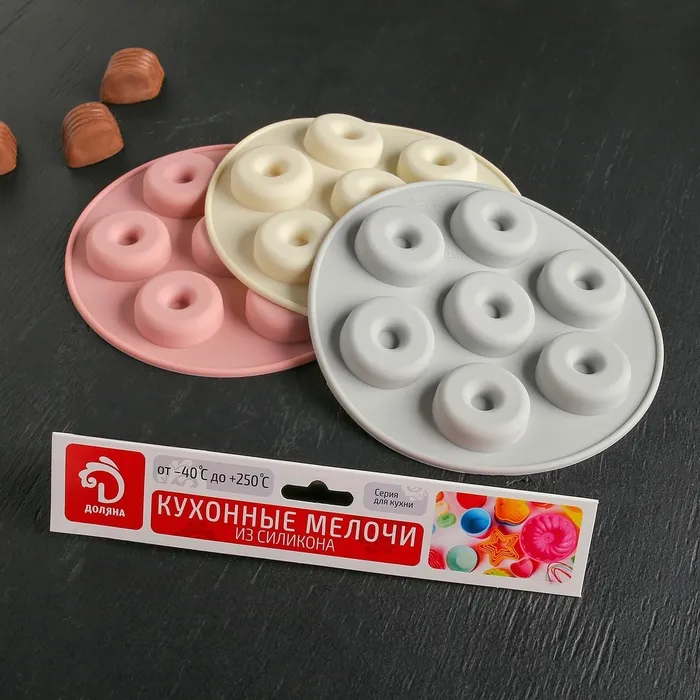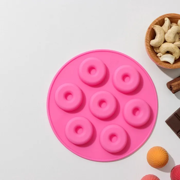 Форма для шоколада Доляна «Пончики», силикон, 15.5×1.3 см, 7 ячеек, МИКС — Характеристики