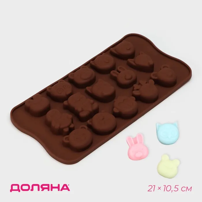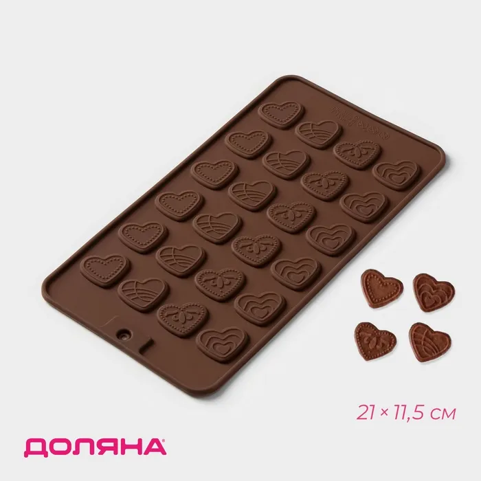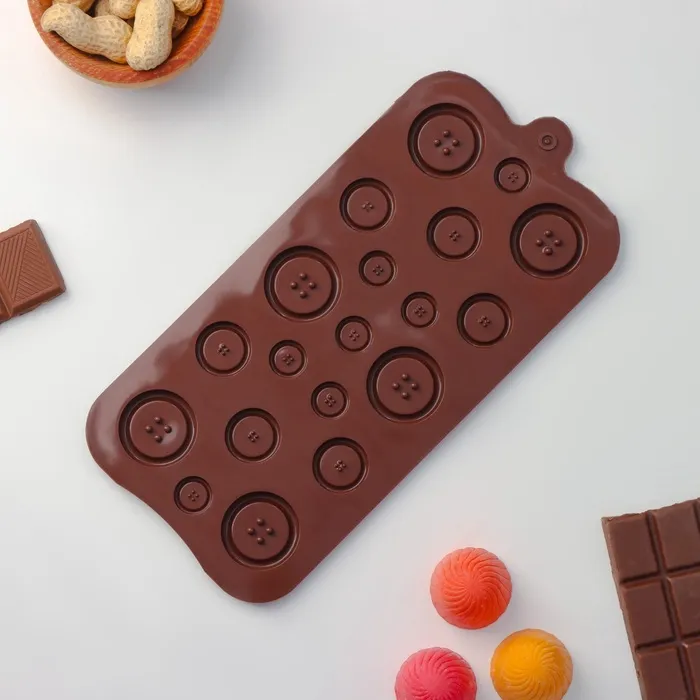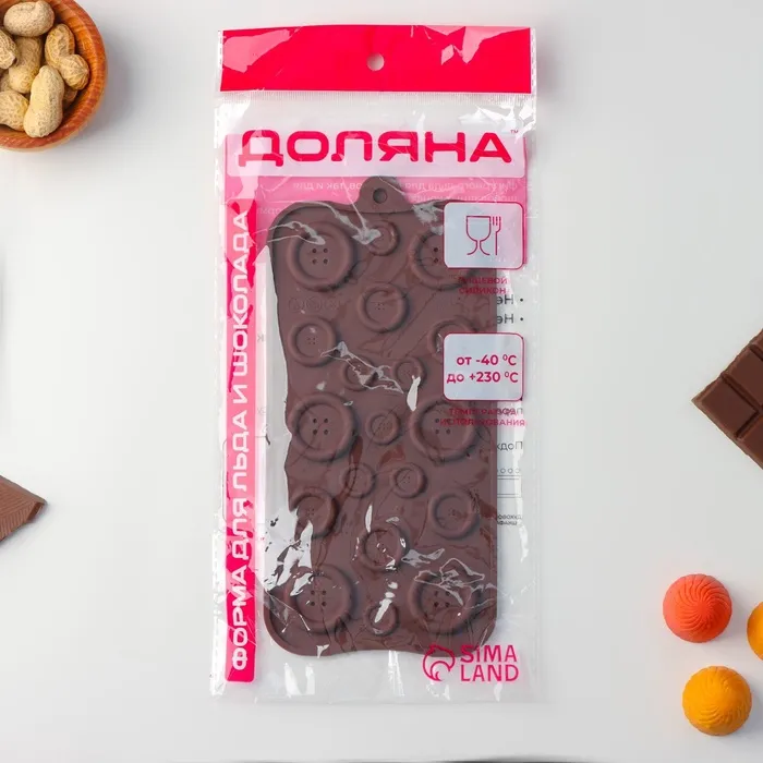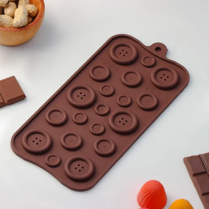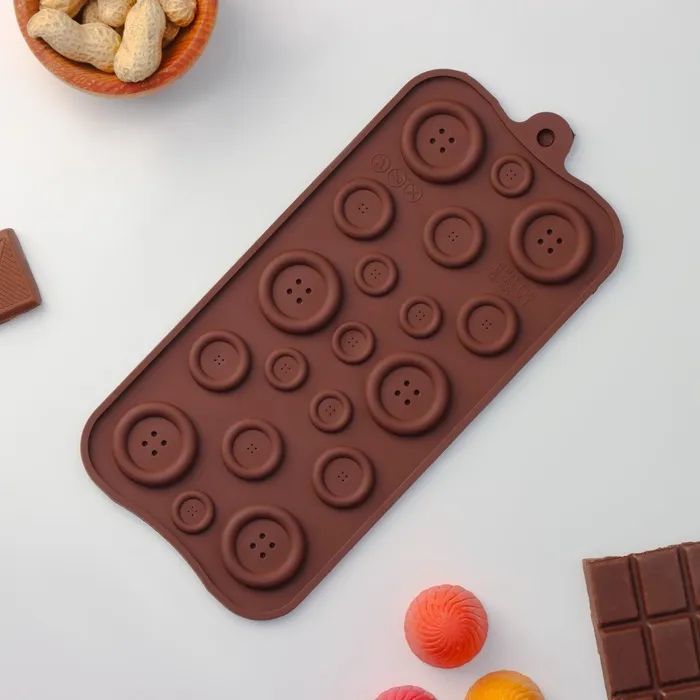 Форма для шоколада Доляна «Пуговки», силикон, 20.5×10 см, 19 ячеек, коричневая — Характеристики