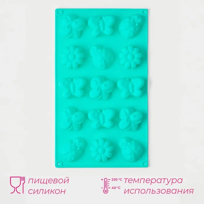 Форма для шоколада Доляна «Пыльца», силикон, 29×17 см, 15 ячеек (4.8×4 см), бирюзовая — Характеристики