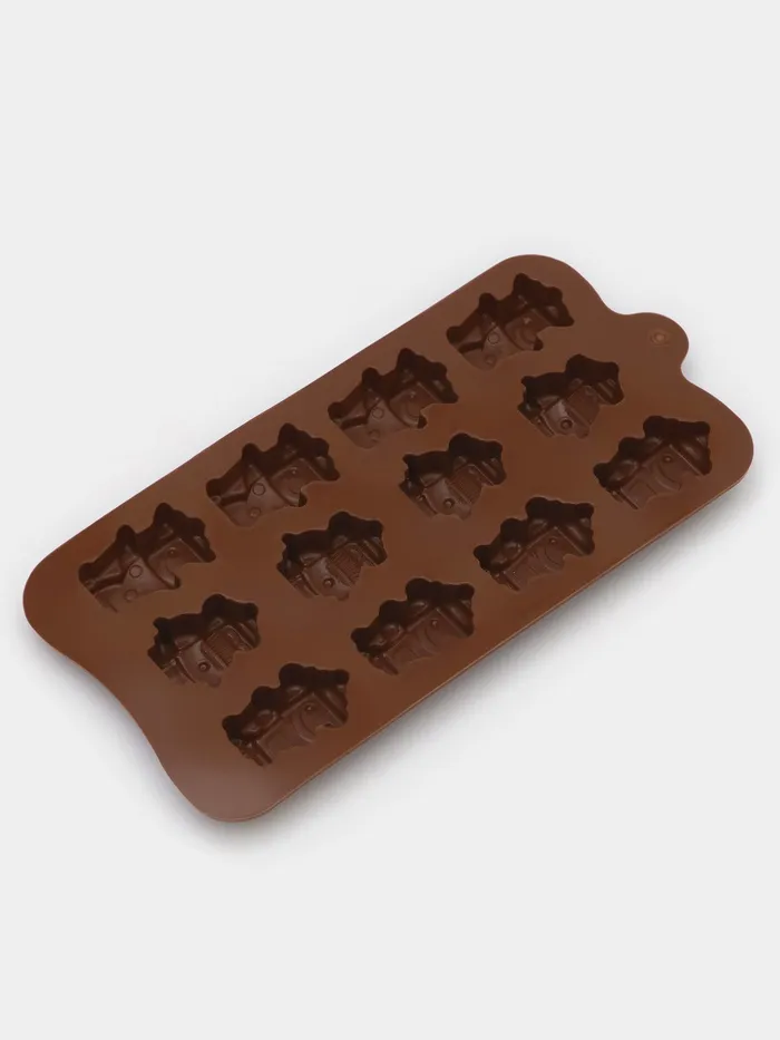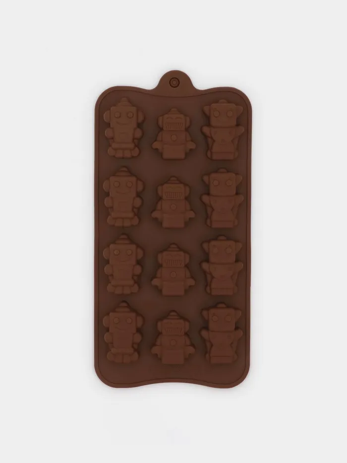 Форма для шоколада Доляна «Роботы», силикон, 21×11×1.5 см, 12 ячеек, коричневая — Характеристики