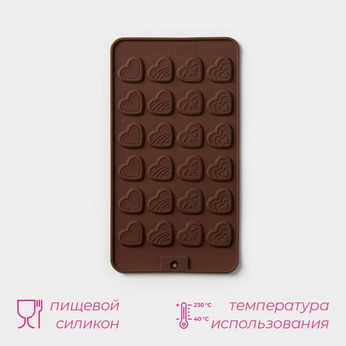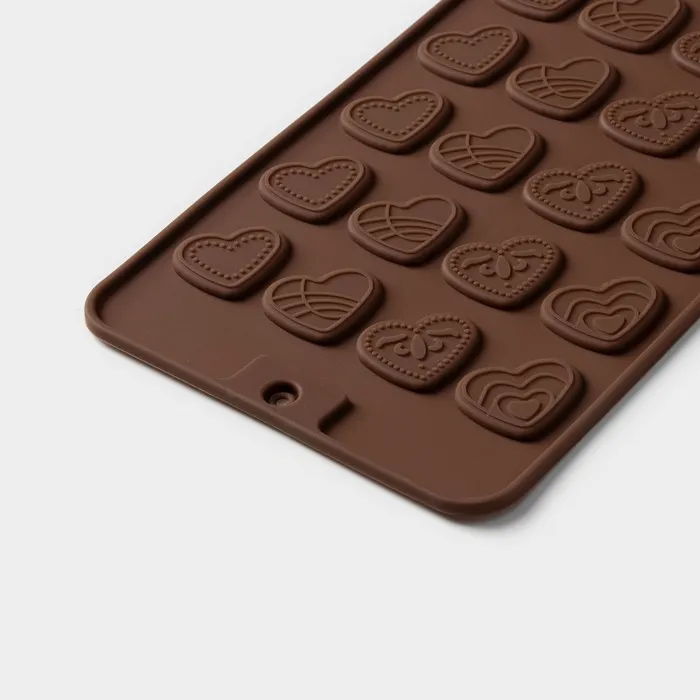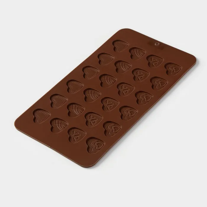 Форма для шоколада Доляна «Сердечки», силикон, 21×11.5 см, 24 ячейки, коричневая — Характеристики