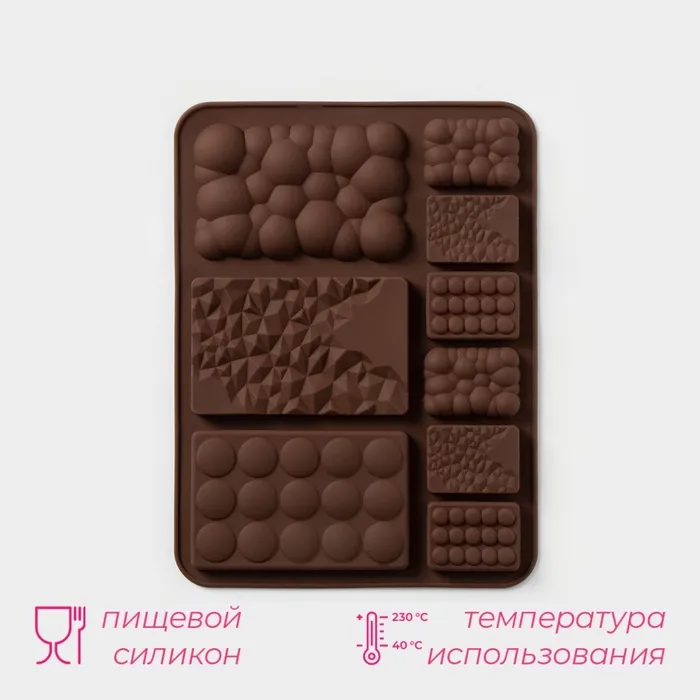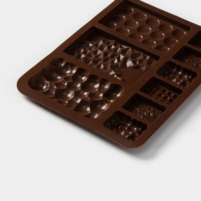 Форма для шоколада Доляна «Шоколадное ассорти», силикон, 20×14.8×0.7 см, 9 ячеек, коричневая — Характеристики