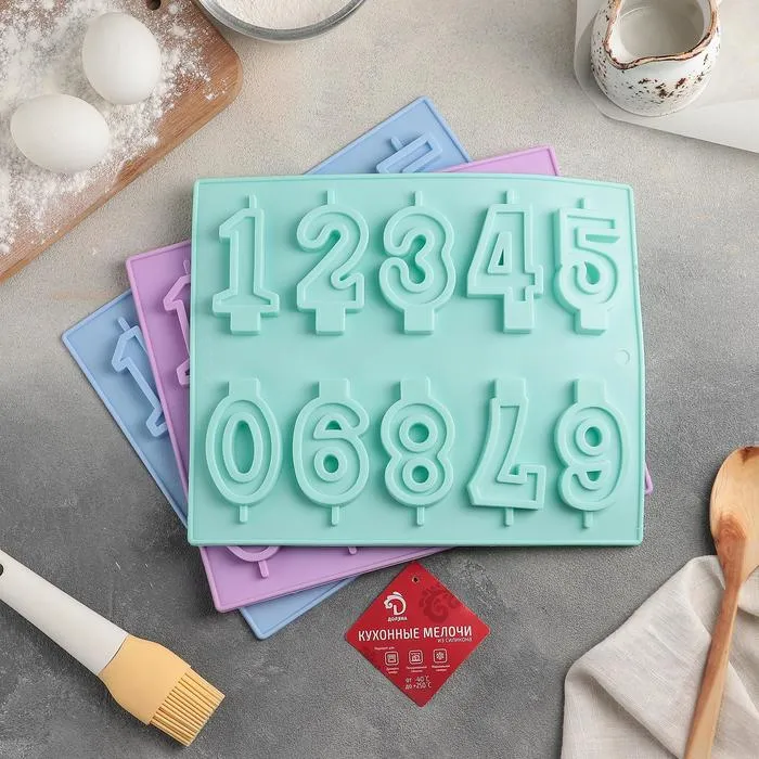 Форма для шоколада Доляна «Цифры», силикон, 26×21 см, 10 ячеек (7×4 см), МИКС — Характеристики