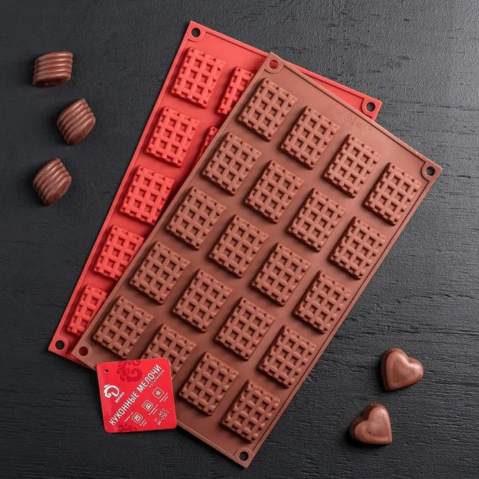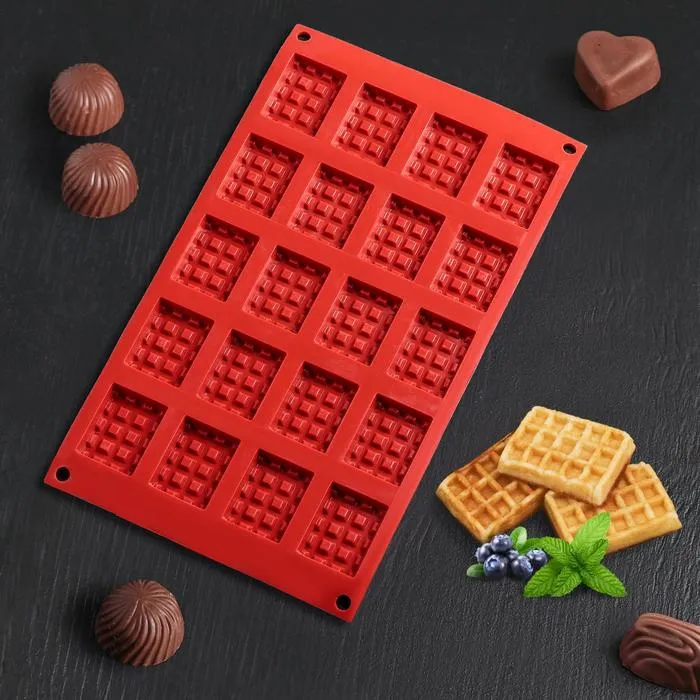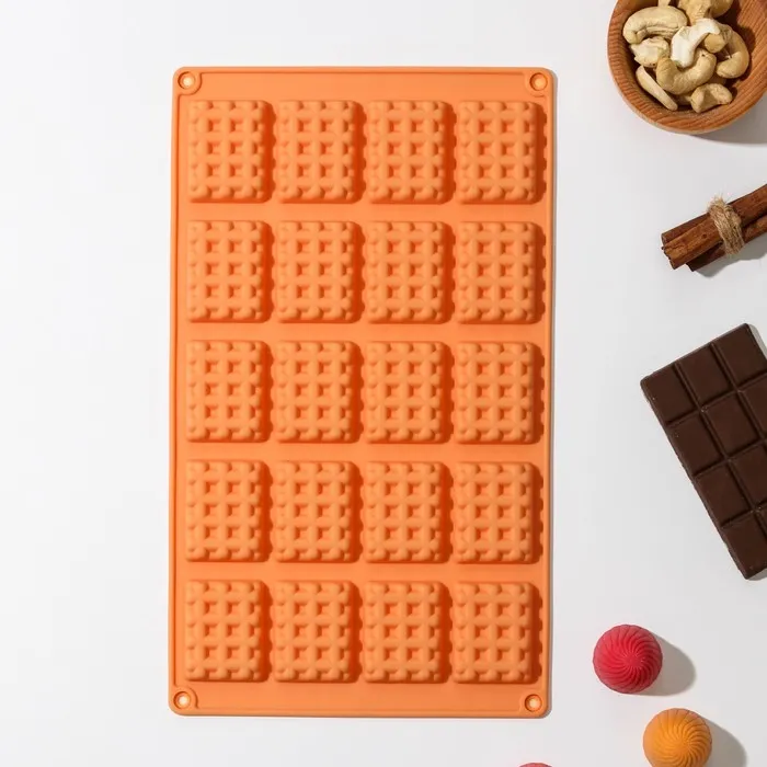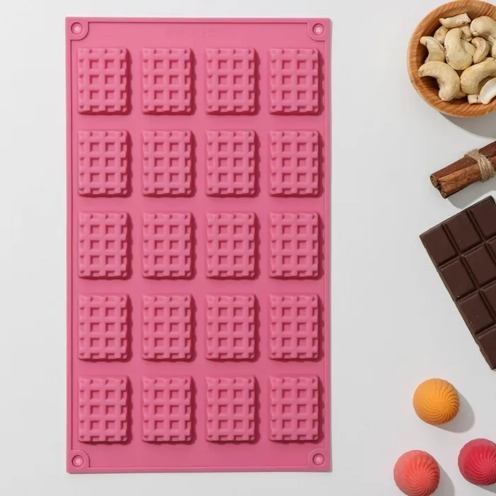 Форма для шоколада Доляна «Вафли», силикон, 17×30×1 см, 20 ячеек (4,3×3,3 см), цвет МИКС — Характеристики