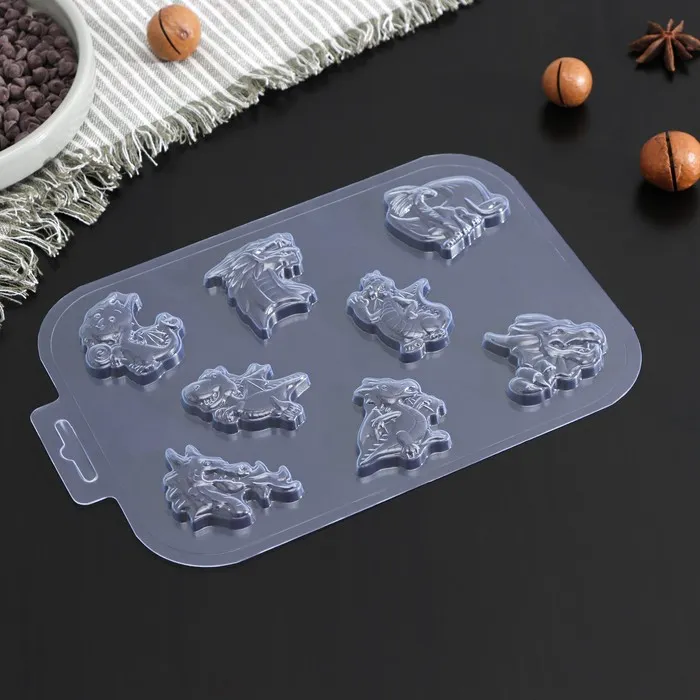 Форма для шоколада и конфет «Драконы», размер ячейки 5×4 см, пластик, прозрачная — Характеристики