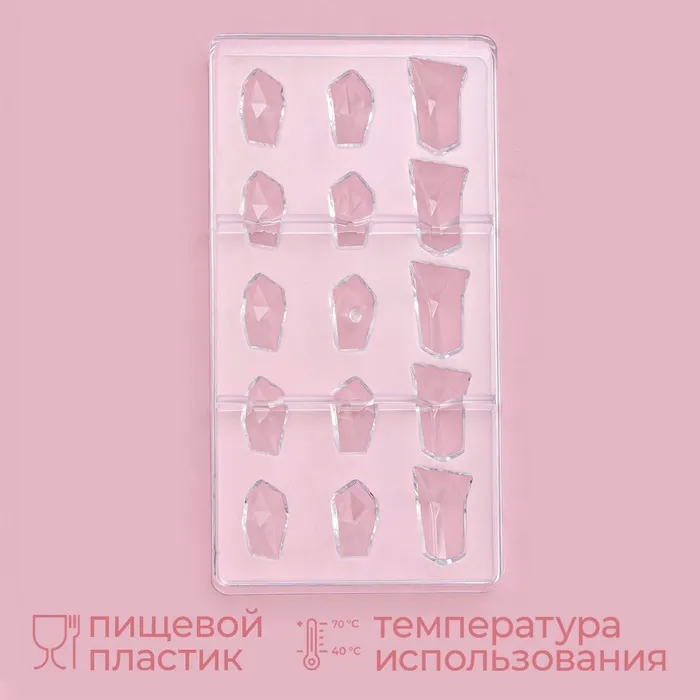 Форма для шоколада и конфет KONFINETTA «Драгоценные камни», 33×16.2 см, 16 ячеек, 2.5×3/4.5 см, прозрачная — Характеристики