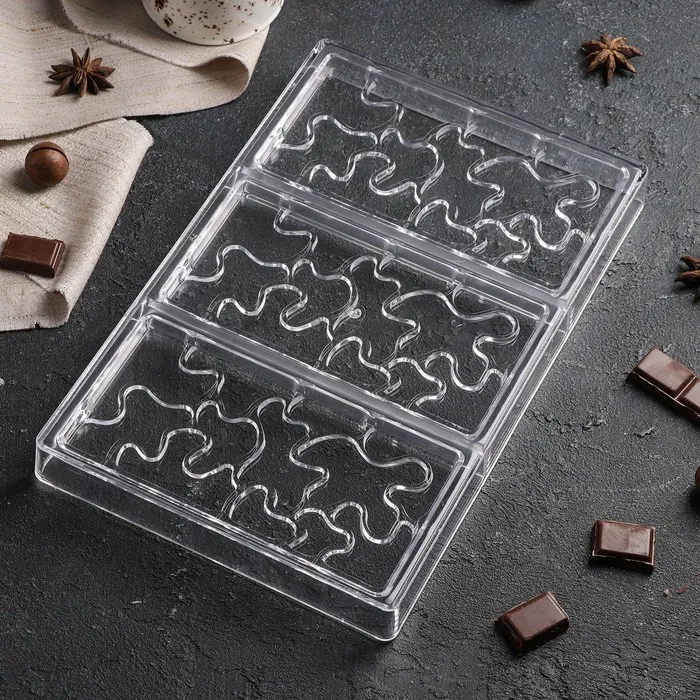 Форма для шоколада KONFINETTA «Абстракция», 27.5×17.5×2.5 см, 3 ячейки 15.3×7.5×0.8 см, прозрачная — Характеристики