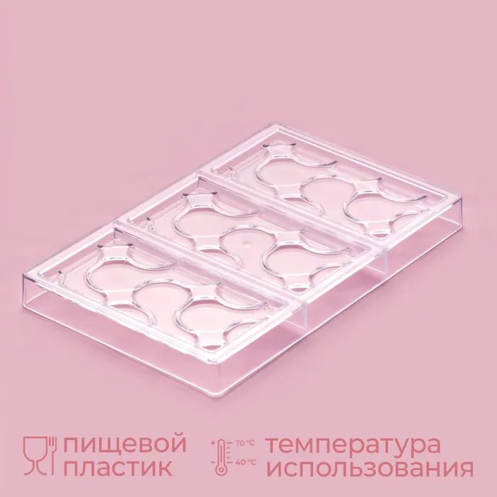 Форма для шоколада KONFINETTA «Симпл-димпл», 27.5×17.5×2.5 см, 3 ячейки 15.3×7.5×0.8 см, прозрачная — Характеристики
