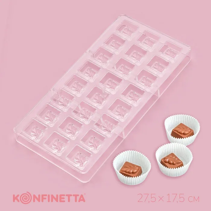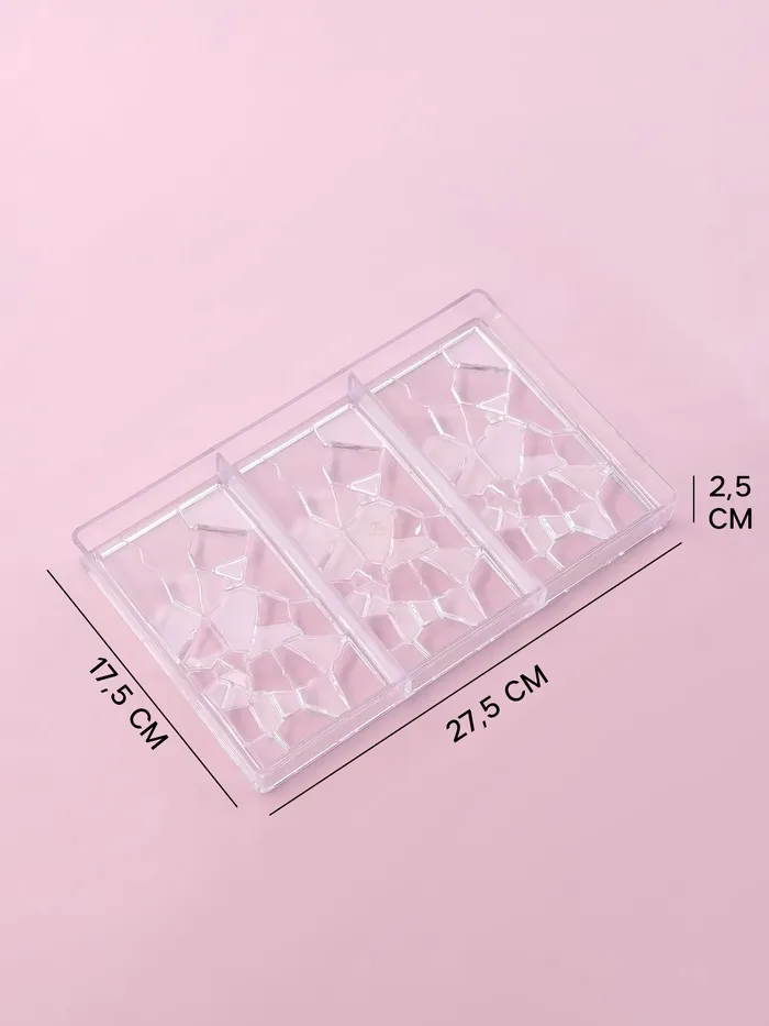 Форма для шоколада KONFINETTA «Сплит», пластик, 27.5×17.5×2.5 см, 3 ячейки 15.3×7.5×0.8 см, прозрачная — Характеристики