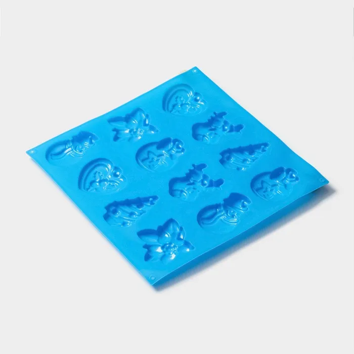 Форма для шоколада новогодняя 3D Доляна «Ёлочные игрушки», силикон, 30×30 см, 12 ячеек, синяя — Характеристики
