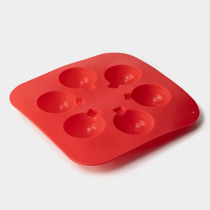 Форма для шоколада новогодняя Доляна «Шар», силикон, 15×15×2 см, 6 ячеек d=3,7 см, цвет красный — Характеристики