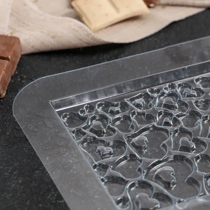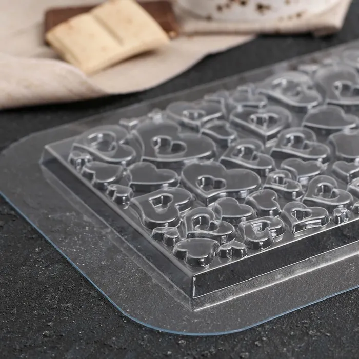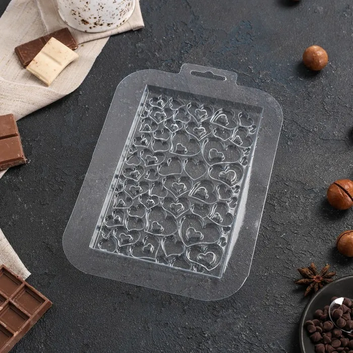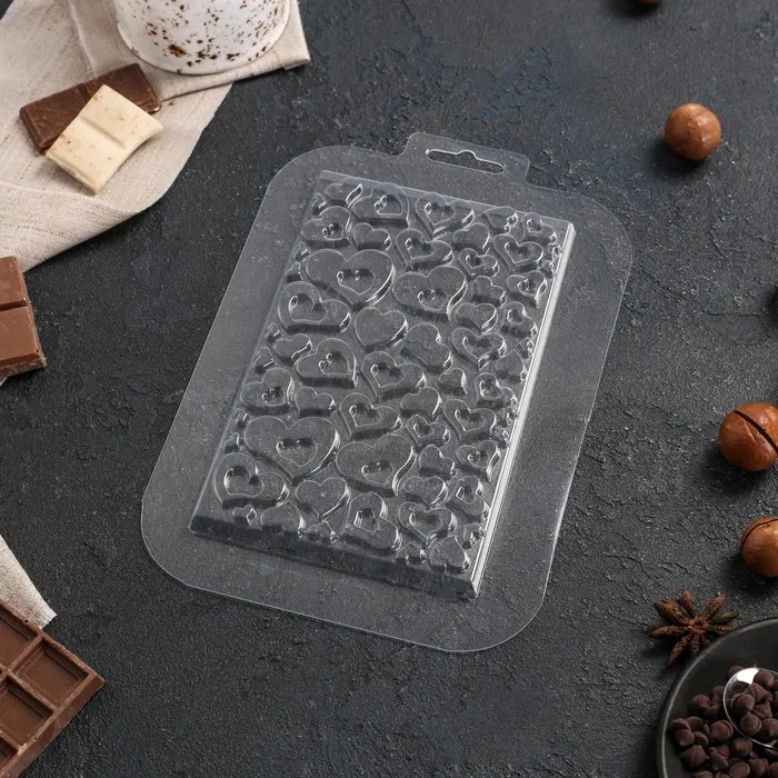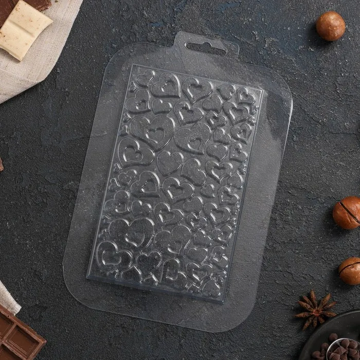 Форма для шоколада «Плитка в сердечках», пластик, прозрачная — Характеристики
