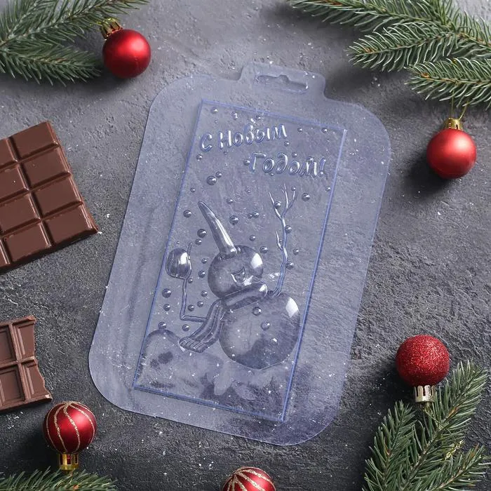 Форма для шоколада «С Новым годом. Снеговик», 17×8,5 см, пластик, прозрачная — Характеристики