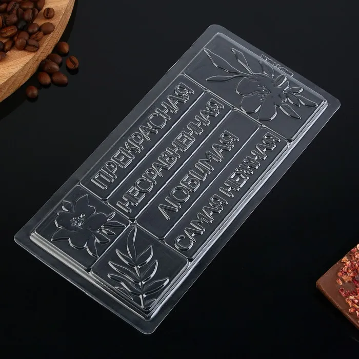 Форма для шоколада изготовлена из пластик. Формочка используется для приготовления шоколада, для декора тортов и десертов , медианты, а так же для творчества. При изготовлении содержимое не прилипает к стенкам формы, не впитывает запах. Если вы ставили форму в холодильник или морозилку, перед тем как доставать готовое изделие, ему необходимо дать постоять и согреться до комнатной температуры. Кондитерский инвентарь легко моется. Пластиковые формы просты в эксплуатации. Подойдут для начинающих кондитеров.