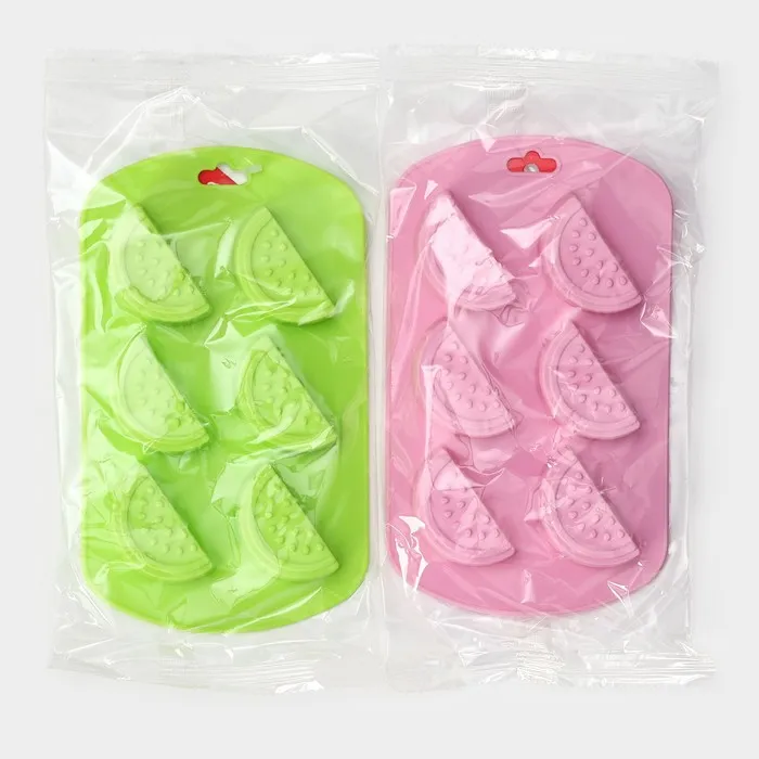 Форма для выпечки Доляна «Арбузные дольки», силикон, 19×11×1.5 см, 6 ячеек (4×2.5 см), МИКС — Характеристики