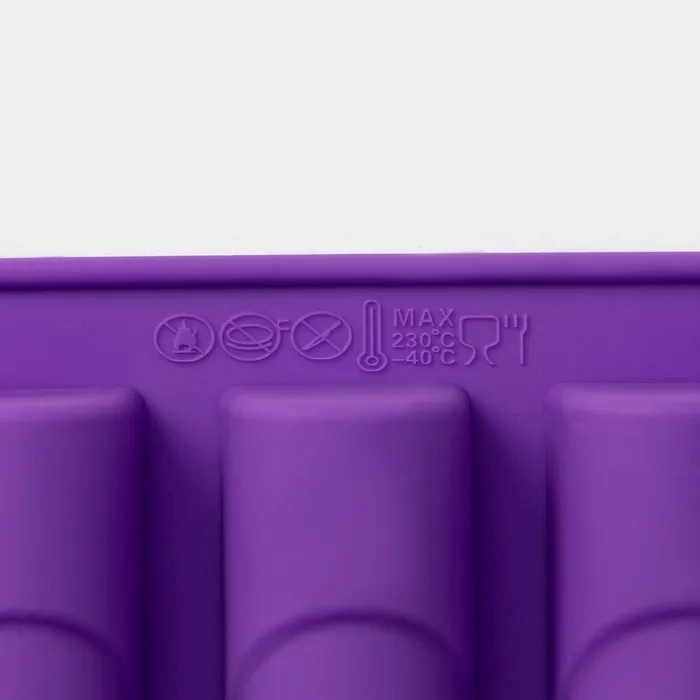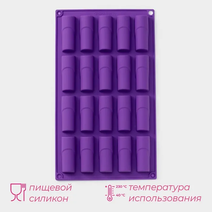 Форма для выпечки Доляна «Батончик», силикон, 30×17.5 см, 20 ячеек (6.5×2.5×2 см), фиолетовая — Характеристики
