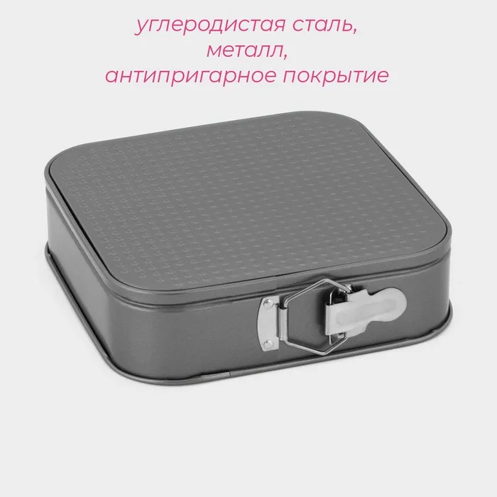 Разъёмная форма для выпечки Доляна «Элин. Квадрат» из углеродистой стали с антипригарным покрытием станет отличным инструментом для приготовления вкусного ужина. Изделие подойдёт не только для выпечки кексов, тортов и пирогов, но и для овощных рагу, запеканок, лазаньи и других слоёных блюд.