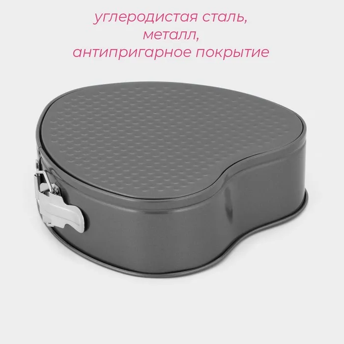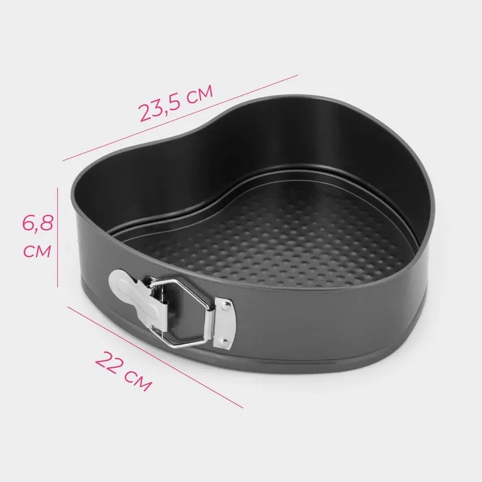 Форма для выпечки Доляна «Элин. Сердце», 23.5×22×6.8 см, разъёмная, антипригарное покрытие, чёрная — Характеристики