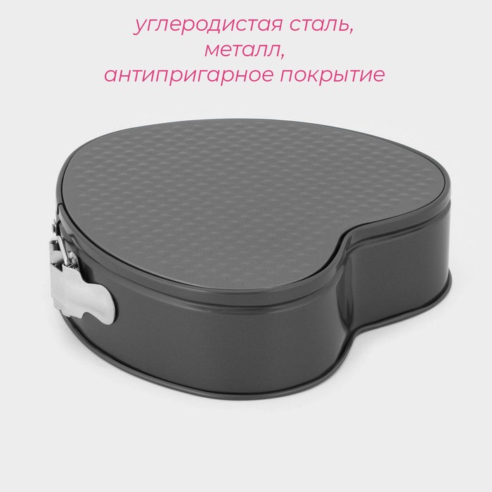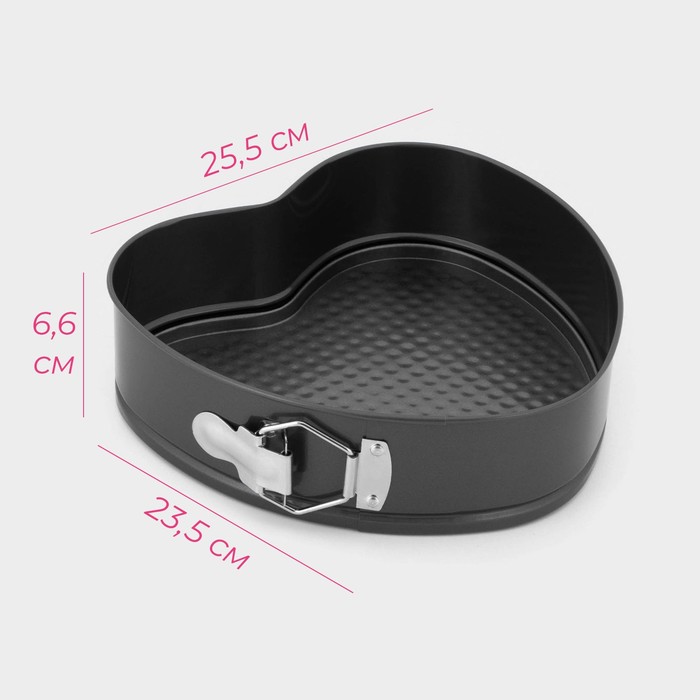 Форма для выпечки Доляна «Элин. Сердце», 25,5×23,5×6,6 см, съёмное дно, антипригарное покрытие, цвет чёрный — Характеристики