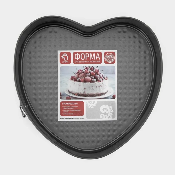 Разъёмная форма для выпечки Доляна «Элин. Сердце» из углеродистой стали с антипригарным покрытием станет отличным инструментом для приготовления вкусного ужина. Изделие подойдёт не только для выпечки кексов, тортов и пирогов, но и для овощных рагу, запеканок, лазаньи и других слоёных блюд.