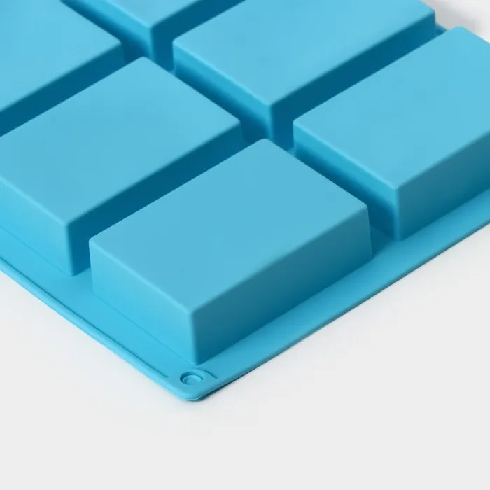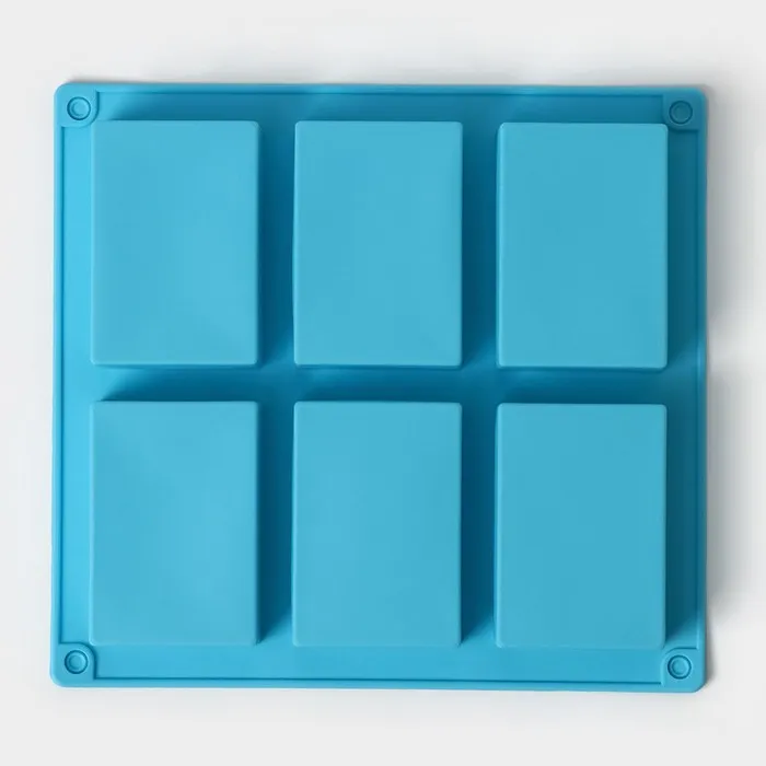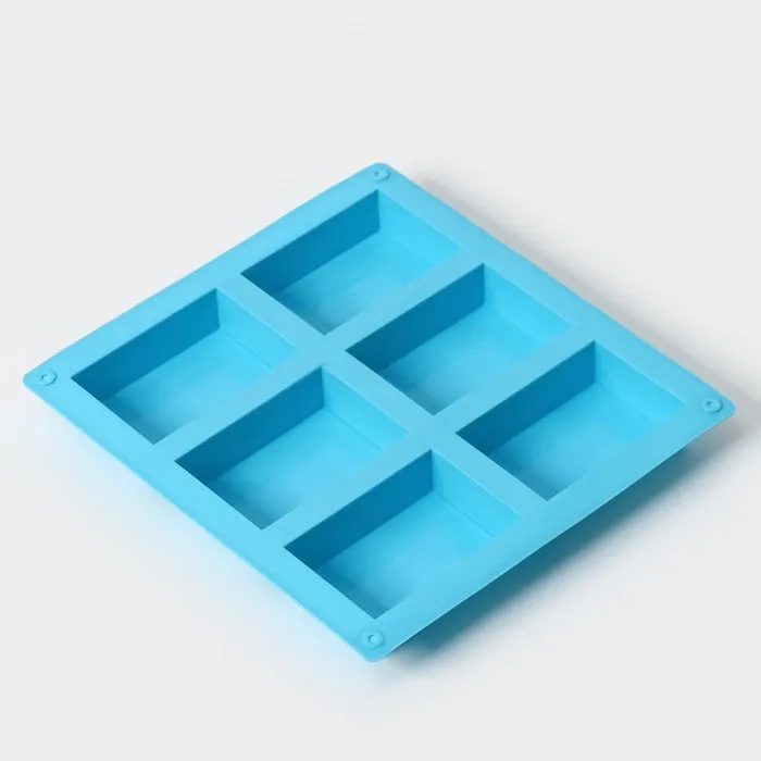 Форма для выпечки Доляна «Фигуры.Прямоугольник», силикон, 22×20.5×2.5 см, 6 ячеек (5.5×8 см), голубая — Характеристики