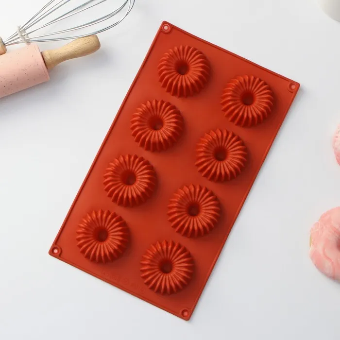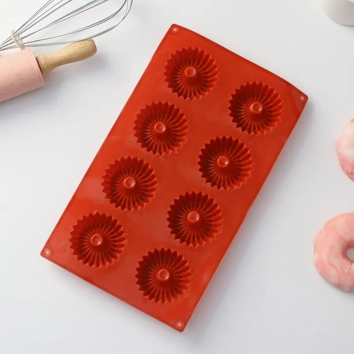 Форма для выпечки Доляна «Кекс», силикон, 29×17×2 см, 8 ячеек (5,8×2 см), цвет коричневый — Характеристики