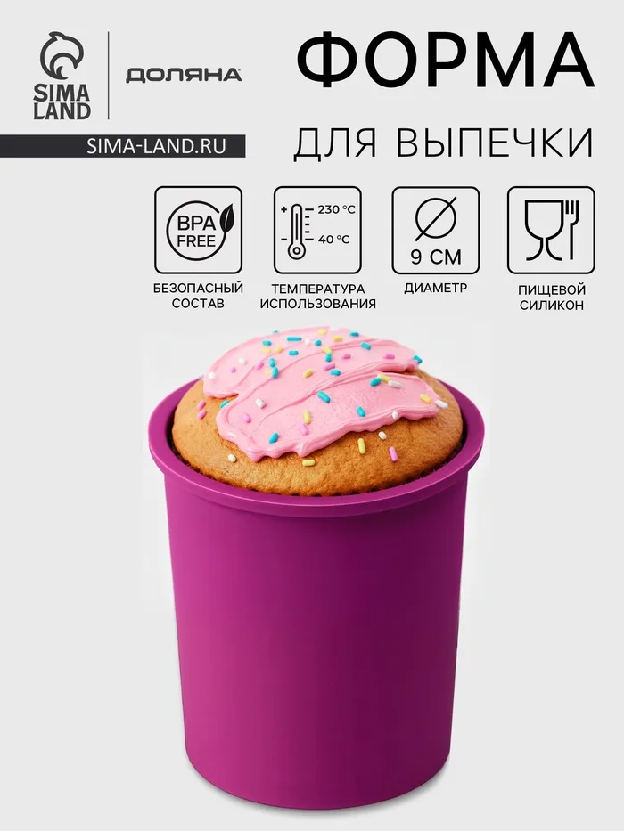 Форма для выпечки Доляна «Кекс», силикон, внешний d=9 см, внутренний d=8 см, фиолетовая — Характеристики