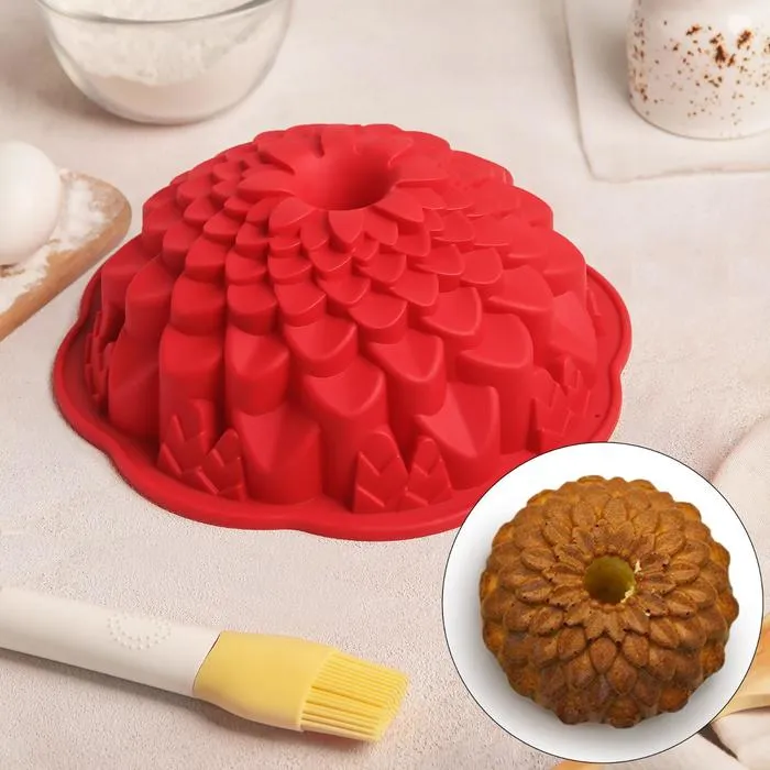 Форма для выпечки Доляна «Хризантема», силикон, 22×7,5 см, цвет МИКС — Характеристики