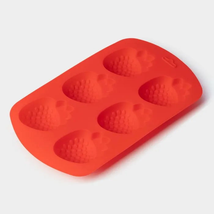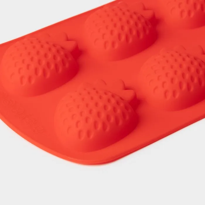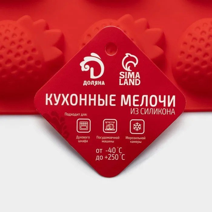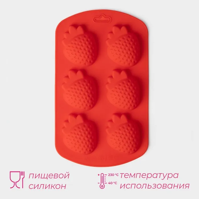 Форма для выпечки Доляна «Клубника», силикон, 19×11×1.5 см, 6 ячеек (4×3.5 см), красная — Характеристики