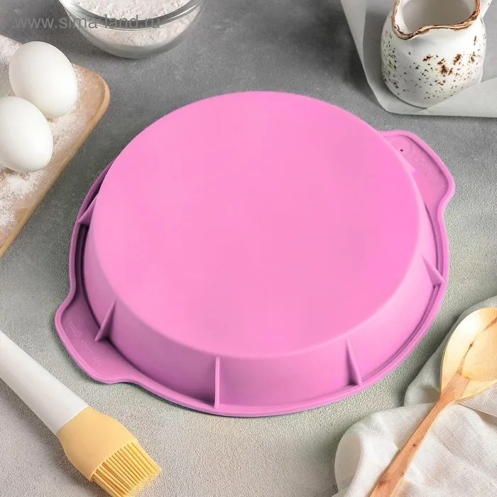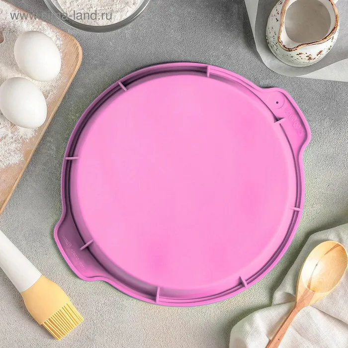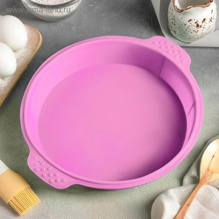 Форма для выпечки Доляна «Круг с ручками», силикон, 26×29×4,5 см, внутренний размер d=24 см, цвет розовый — Характеристики