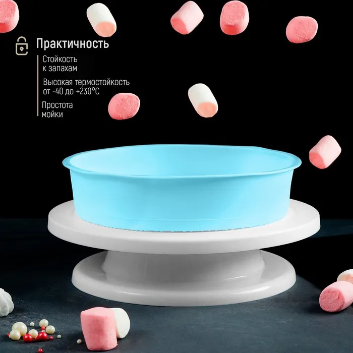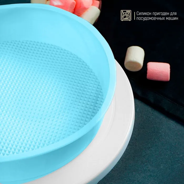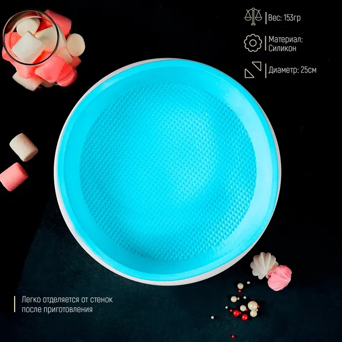 Форма для выпечки Доляна «Круг», силикон, 25×5.5 см, внутрений d=23 см, голубая — Характеристики