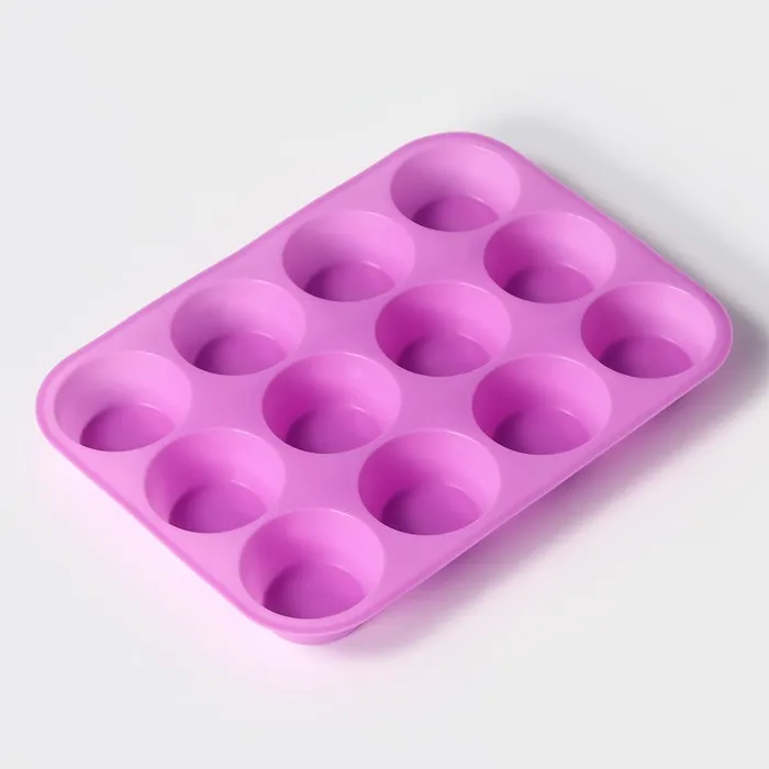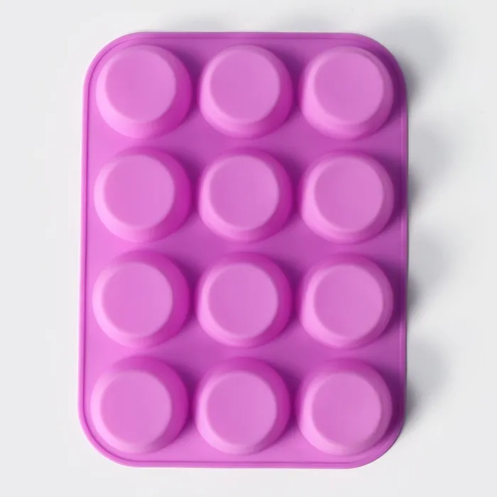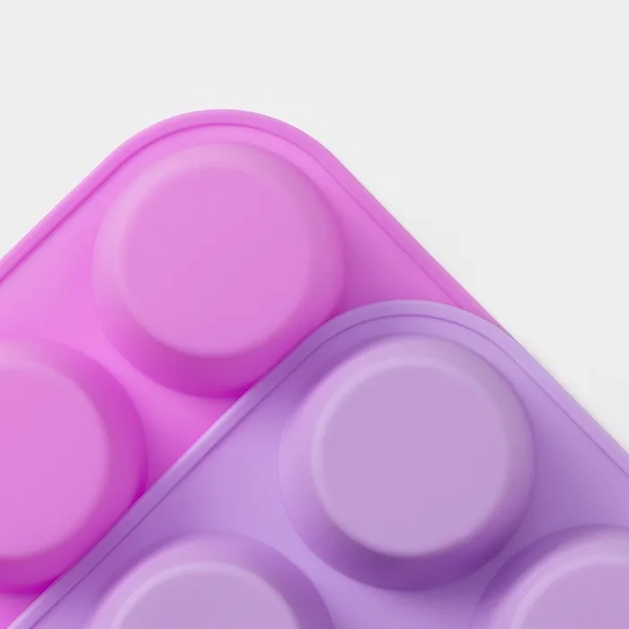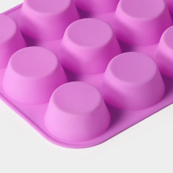 Форма для выпечки Доляна «Круг», силикон, 29×22×3 см, 12 ячеек, d=6.5 см, сиреневая — Характеристики