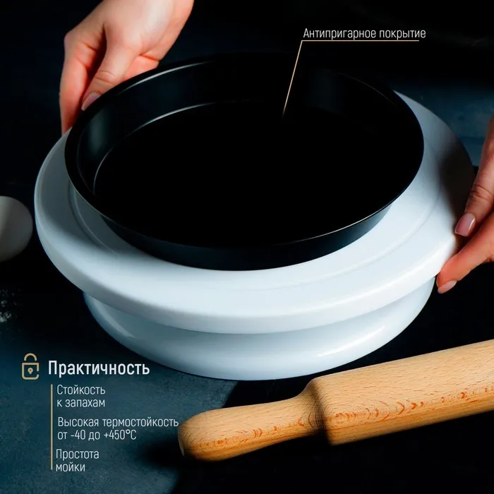 Форма для выпечки Доляна «Круг. Жаклин», 22×3 см, антипригарное покрытие, цвет чёрный — Характеристики