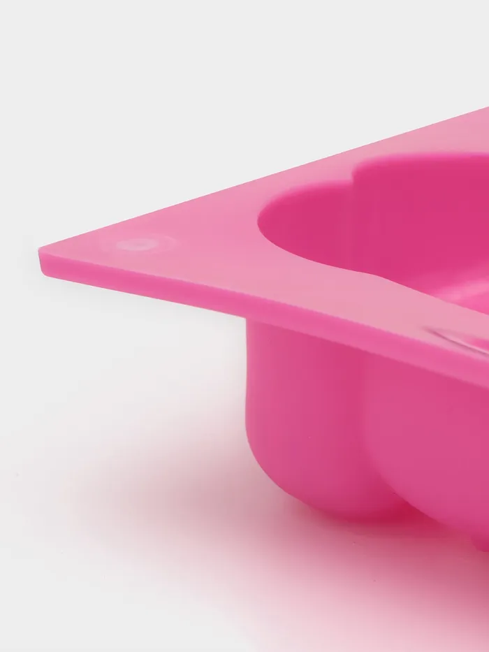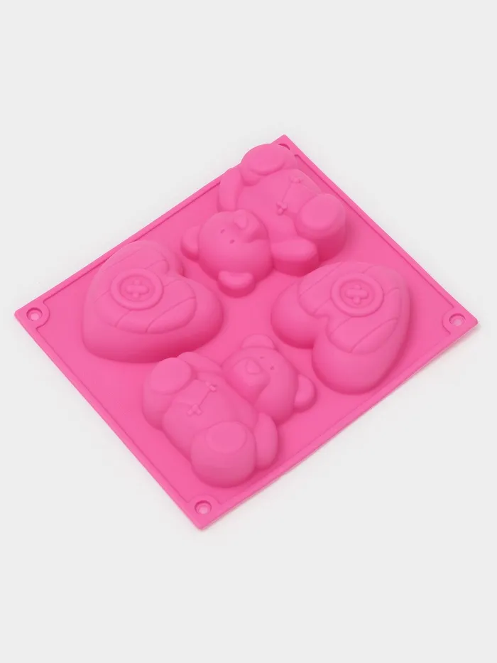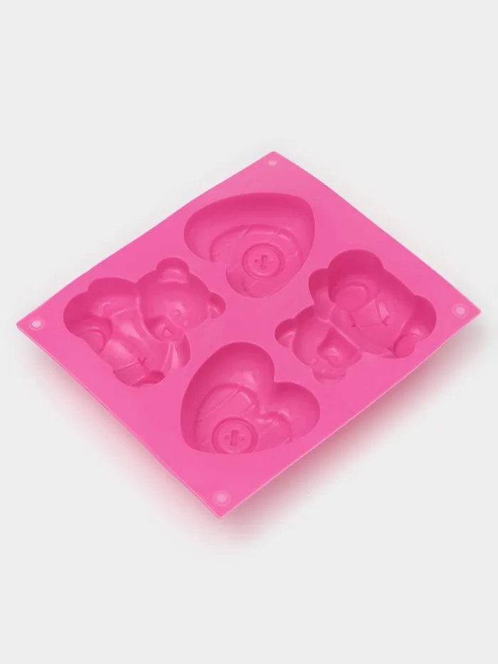 Форма для выпечки Доляна «Мишка и сердце», силикон, 17×15 см, 4 ячейки, розовая — Характеристики