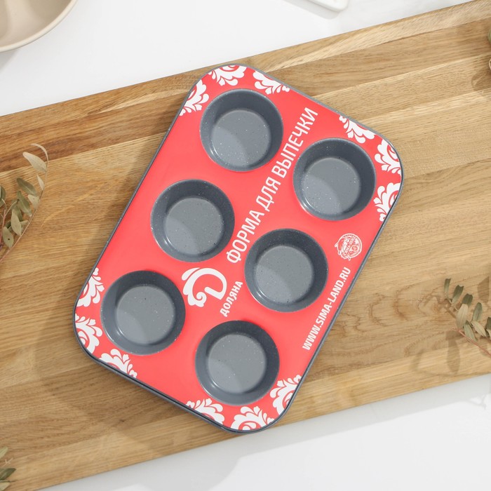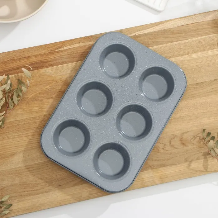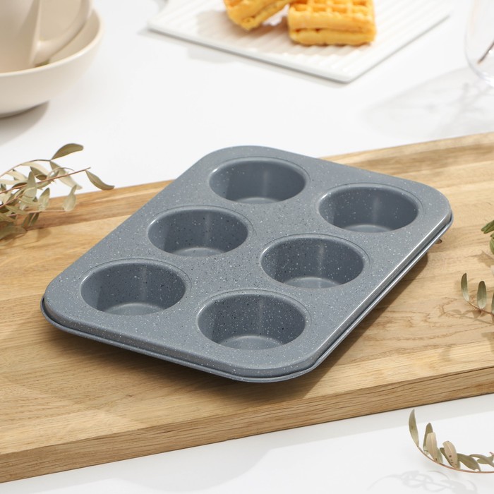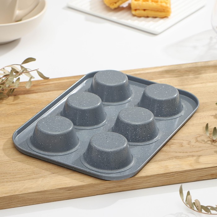 Форма для выпечки Доляна «Мрамор. Круг», 27×19,2 см, 6 ячеек, антипригарное покрытие, цвет серый — Характеристики