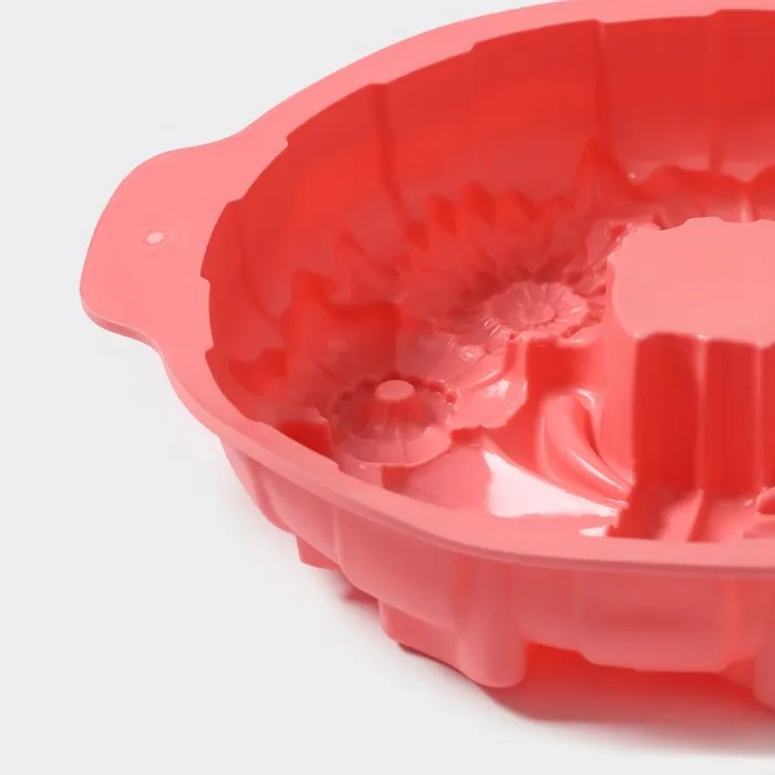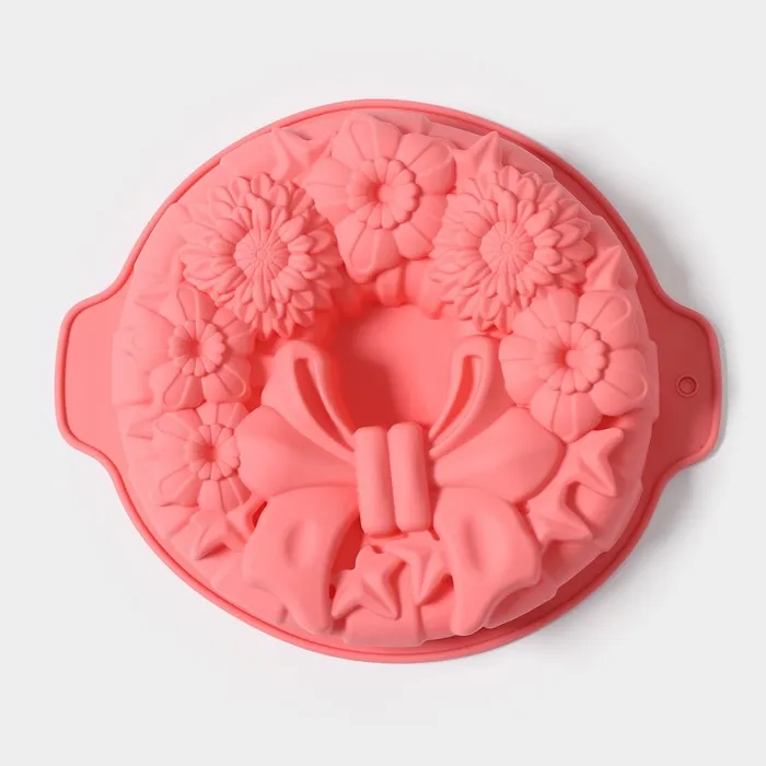 Форма для выпечки Доляна «Немецкий кекс. Праздничный венок», силикон, 26×30 см, с ручками, розовая — Характеристики