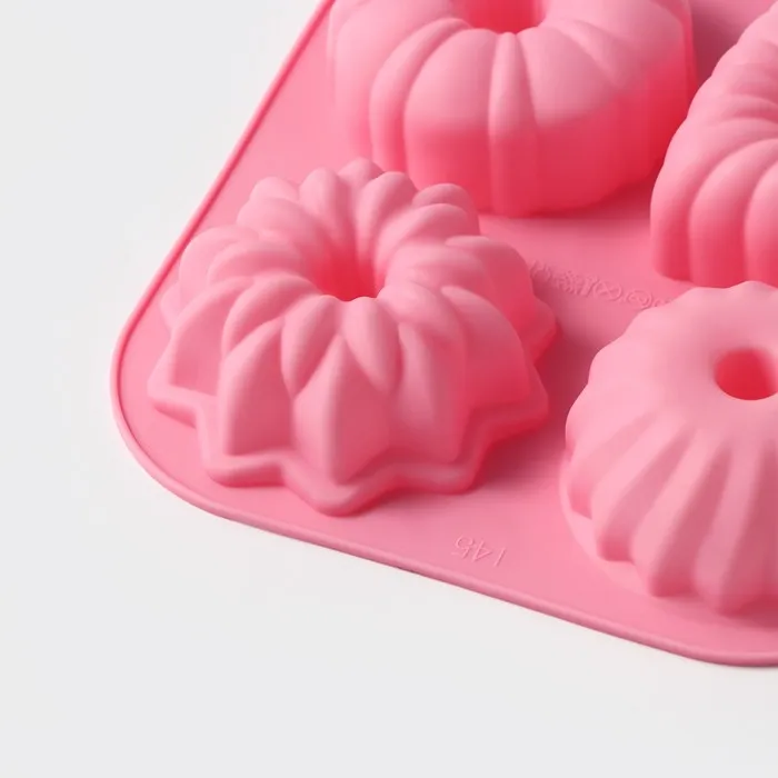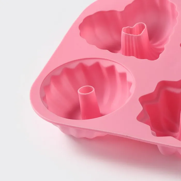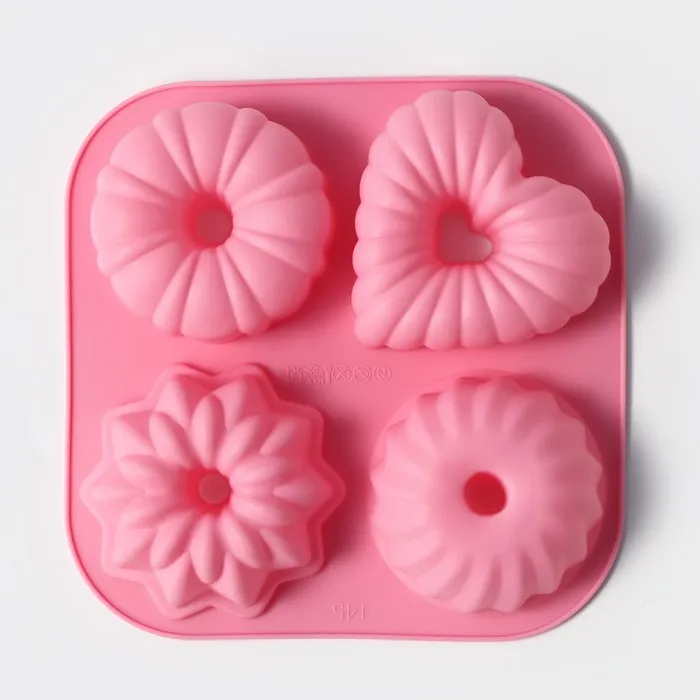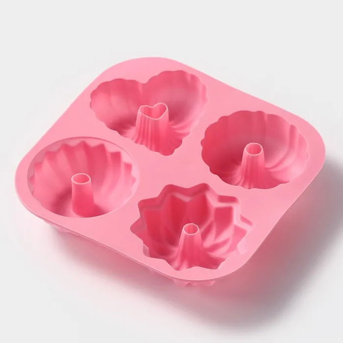 Форма для выпечки Доляна «Немецкий кекс», силикон, 17×17 см, 4 ячейки, розовая — Характеристики