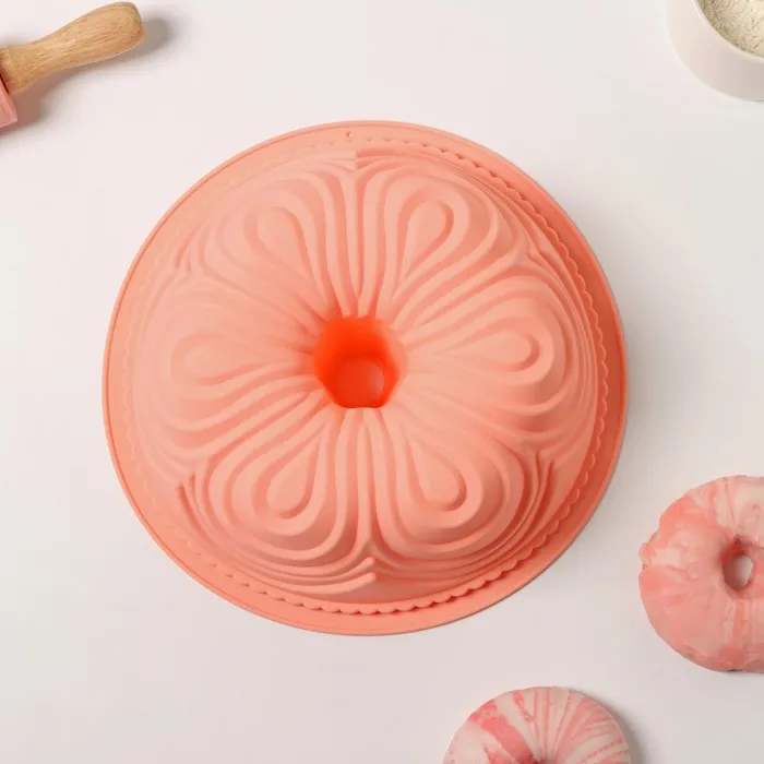 Форма для выпечки Доляна «Немецкий кекс. Торжество», силикон, 22.5×8 см, внутренний диаметр 20 см, персиковая — Характеристики