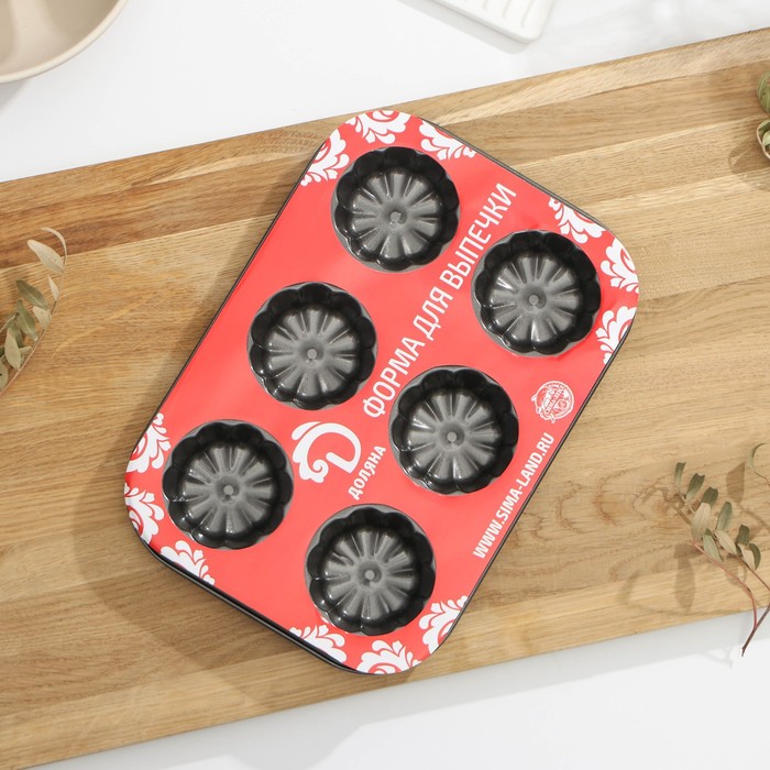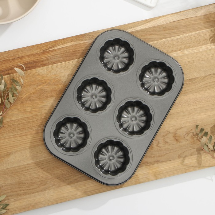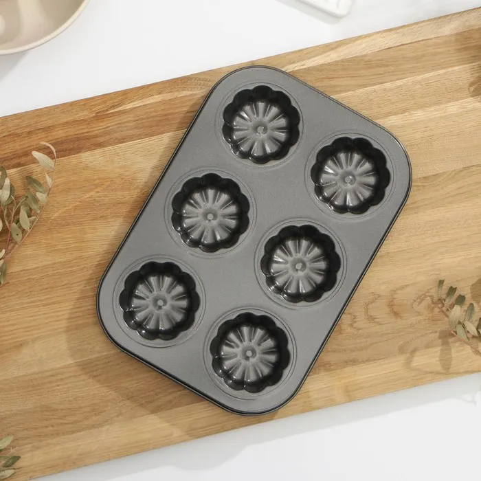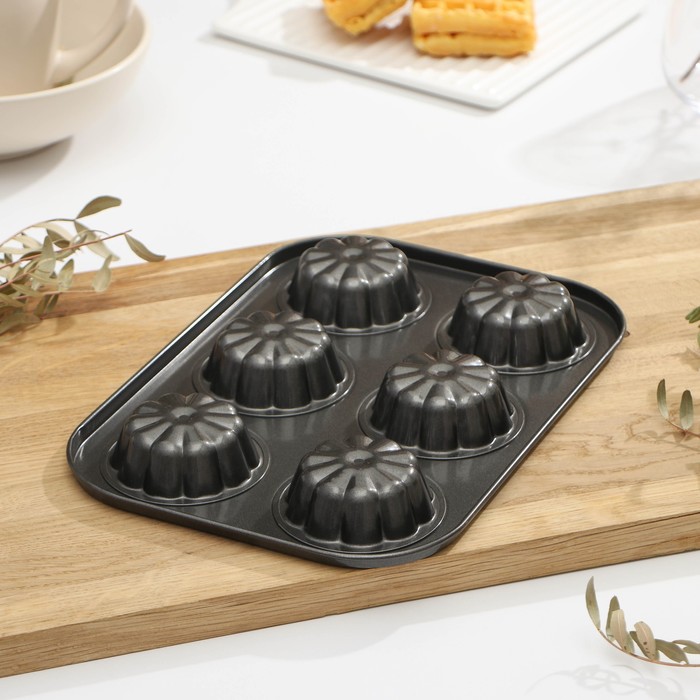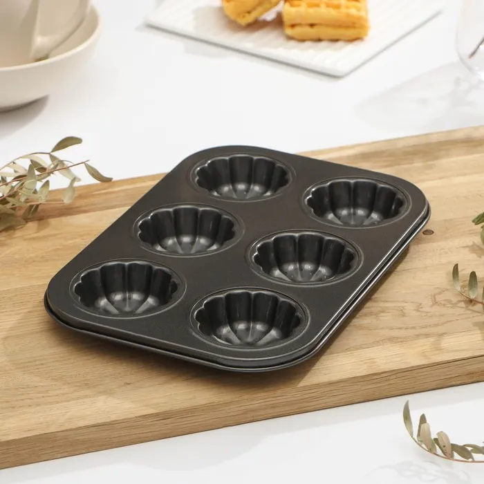 Форма для выпечки Доляна «Неженка», 27×18×3 см, 6 ячеек, антипригарное покрытие, цвет чёрный — Характеристики