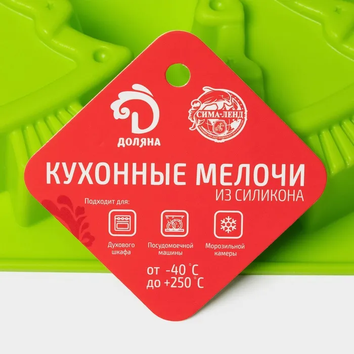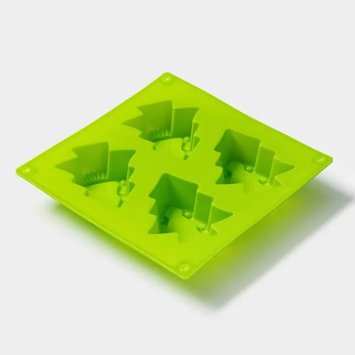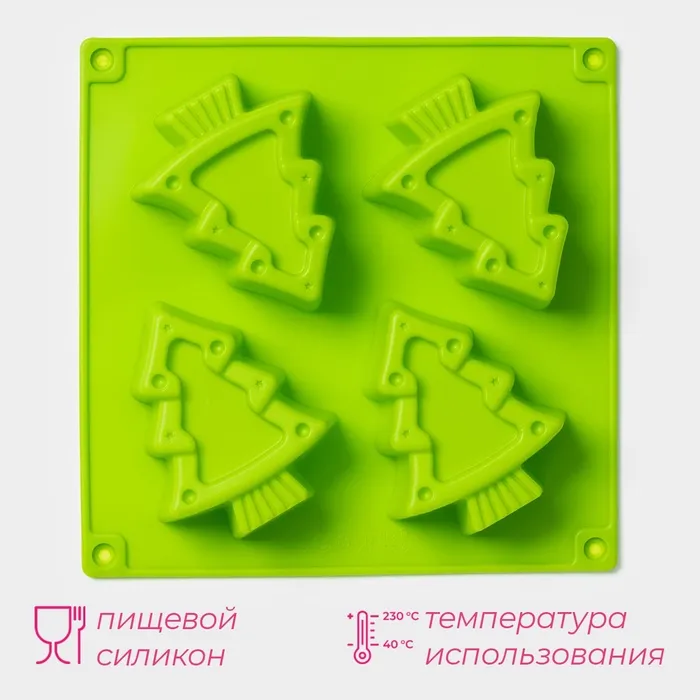 Форма для выпечки Доляна «Новый год. Ёлочки», силикон, 18×18 см, 4 ячейки, зелёная — Характеристики