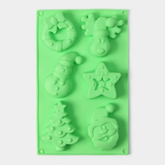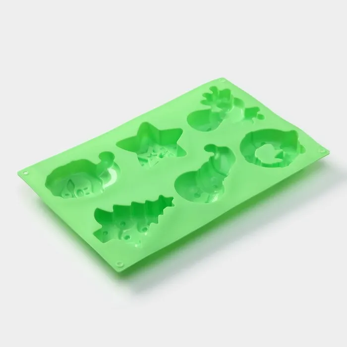Форма для выпечки Доляна «Новый год», силикон, 27×17×2 см, 6 ячеек, зелёная — Характеристики