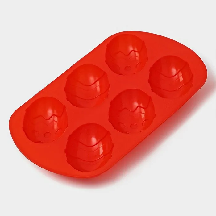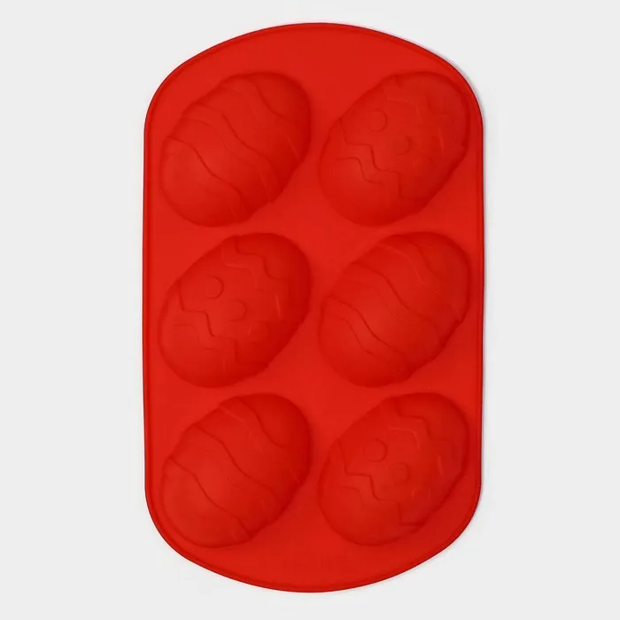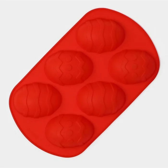 Форма для выпечки Доляна «Пасха. Пасхальные яйца», силикон, 32.5×19.5 см, 6 ячеек (9.7×6.8 см), красная — Характеристики