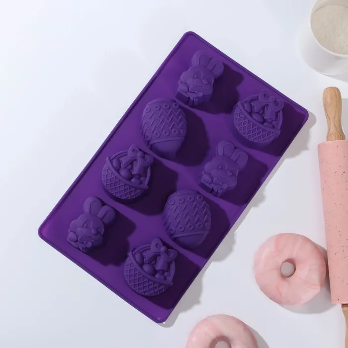Форма для выпечки Доляна «Пасха», силикон, 29×17 см, 8 ячеек (6.5×5.2 см), МИКС — Характеристики